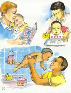give Mike his first bath. Afterwards, she gently covered him with powder, and dressed him