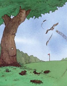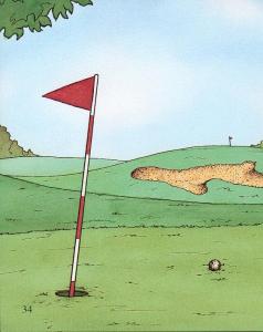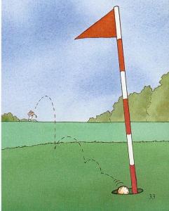 The scene is usually the same.  Bobby delays in the pro shop until the drinks are bought.  Then he rehashes all of his unlucky bounces, pays off his debts, and leaves just before it is his turn to buy.