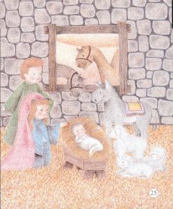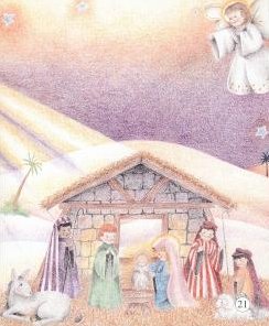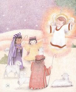 That very night that Jesus was born, some shepherds were watching their flock of sheep in the fields.  Suddenly, Karen, an angel of the Lord stood before them.  The glory of the Lord shone around them, and they were really afraid.