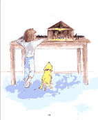 Her daydreaming stopped as she heard the voice of Mom behind her.  "Would you please help me set up the Nativity scene, Suzy?"