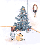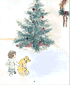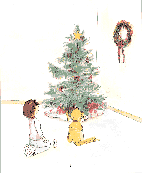 On this special night, Suzy was sitting on the floor near the Christmas tree.   Along with her pet Dog, Sandy, she gazed at the beautiful, shining star at its top.